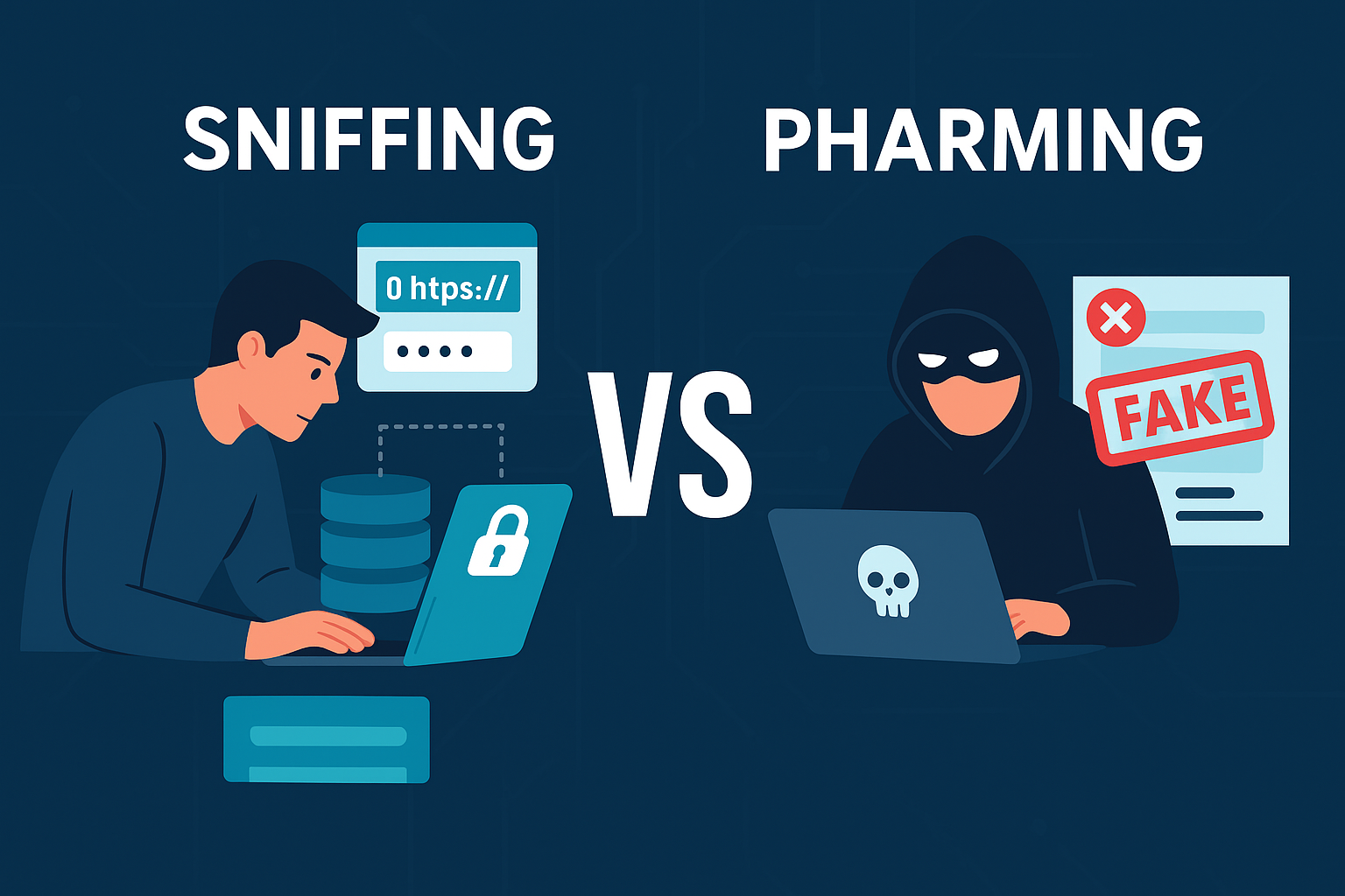 Di era digital yang semakin berkembang, ancaman serangan siber dapat menyerang siapa saja—mulai dari pengguna internet biasa hingga perusahaan besar. Dua serangan yang sering menjadi perhatian adalah sniffing dan pharming. Keduanya dapat mencuri data sensitif seperti password, data perbankan, hingga identitas pribadi. Meski sama-sama berbahaya, cara kerja kedua serangan ini berbeda.